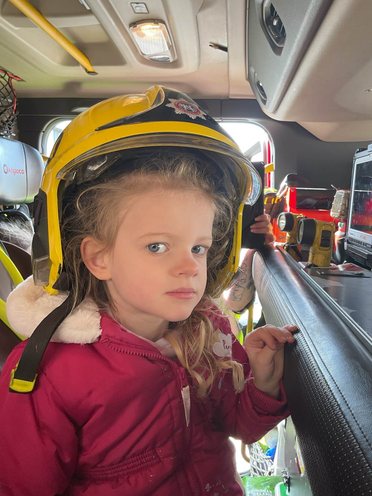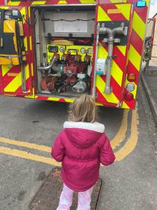 The children enjoyed being able to ask questions, touch some of the equipment with support, and watch the lights on the fire engine.