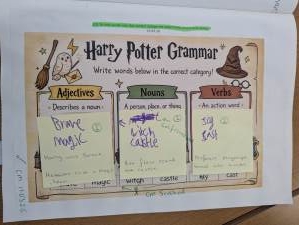 This week in English, our learning has been magical as we explored Harry Potter! We have been discovering new vocabulary by finding and discussing definitions of unfamiliar words. The learners have been identifying key information in the text and learning how to sort words into nouns, adjectives and verbs. Learners also enjoyed writing their own character descriptions, creating imaginative spells, and practising writing expanded noun phrases to make their sentences more detailed and interesting.